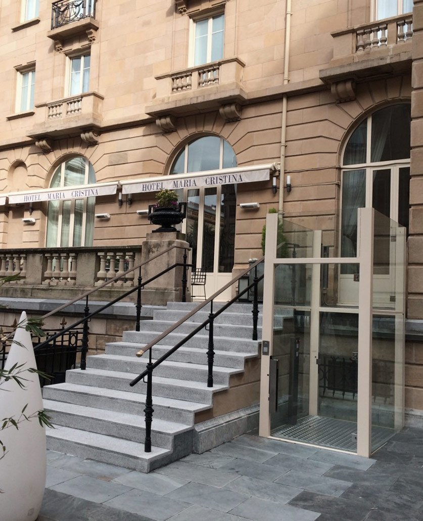 La Plataforma Vertical A28, es un elevador de corto recorrido adecuado para intemperie en accesos a Comunidades o Comercios.